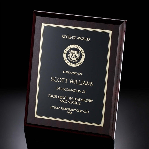 Commend valued coworkers and volunteers for their outstanding efforts. For award recipients committed to success, our Elegant Dark Cherry Plaque features a black and gold plate to engrave logos, artwork, and messages of sincere appreciation. One of our most economical awards in corporate recognition to reward excellence in a job well done.