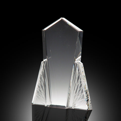 Our clear crystal awards and trophies include both simple elegance and extravagant opulence. From standing-star employee recognition awards to five-star crystal towers, and everything in-between, you’ll find lead crystal or polished optical crystal awards of all price ranges. Choose classic designs such as circle, star, or rectangle for achievement recognition or go all out with crystal flame awards, abstract geometric and spiral gem-cut contemporary designs. Let the sparkle, clarity, and brilliance of our clear crystal awards bring sophistication to your recognition award celebrations. At Recognition Source, our custom awards and trophies are always engraved with free logo and text engraving. Order a stunning crystal trophy online now!