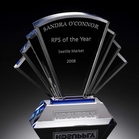 At Recognition Source, our popular clear-crystal awards have been enhanced with an infusion of vibrant colored crystal designs! Solid color, two-tone, and prism-coated crystal awards promise to create a dramatic effect in your next employee appreciation program. From the red crystal apple of an educator’s award to the colors of the rainbow of our prism designs, these achievement awards can be personalized with a message of appreciation. With colored-crystal awards for every budget, you will find eye-catching awards for any recognition occasion. Our awards are always engraved with free logo and text engraving! Browse our selection of engraved crystal trophies and awards below.