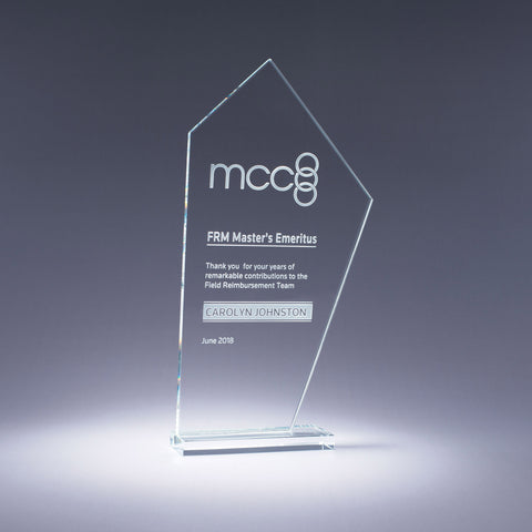 All crystal awards are featured here at a quick glance! We offer high quality engraved crystal awards and crystal trophies designed to fit any recognition program budget. Choose from a variety of shapes and designs including pyramid, diamond, stars, globes, towers, and flames. For extra panache in your corporate crystal awards, check out our unique collection of colored crystal awards and “elite” awards. You’ll find accents like decorative scrolling, elegant artisan designs, prism coloring, and embedded clocks. All crystal trophies and awards are engraved with free logo and text. If you need your engraved awards in a hurry, our Rush Awards can ship within 48 hours.