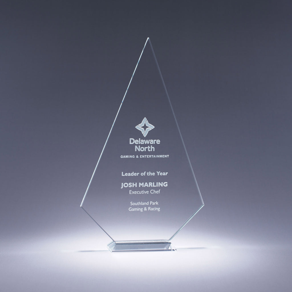 Description: This classic diamond shape is a profile of success. Made of Starphire Crystal, our Prosperity Award will not disappoint.
