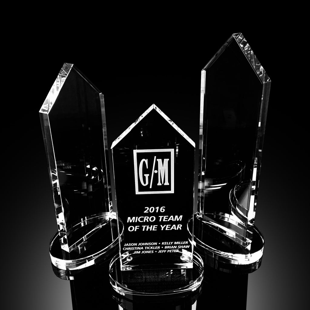 The crystal Oval Base Estate Tower is offered in three separate sizes to congratulate for a job well done. This crystal award has plenty of room to accommodate a logo along with your personalized information that will surely leave a lasting impression.