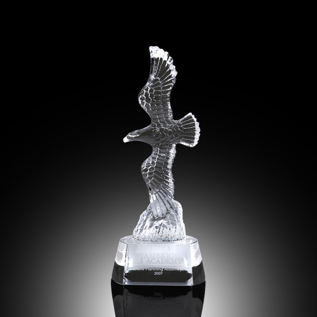 The tip of this eagle's wing brushes a tall peak symbolizing the pinnacle of success.  Secured to an engraved crystal base, the Soaring Eagle Crystal Award is the ideal corporate or employee recognition gift for recipients who exceed expectations. Elevate the meaning of success at your next recognition award ceremony.