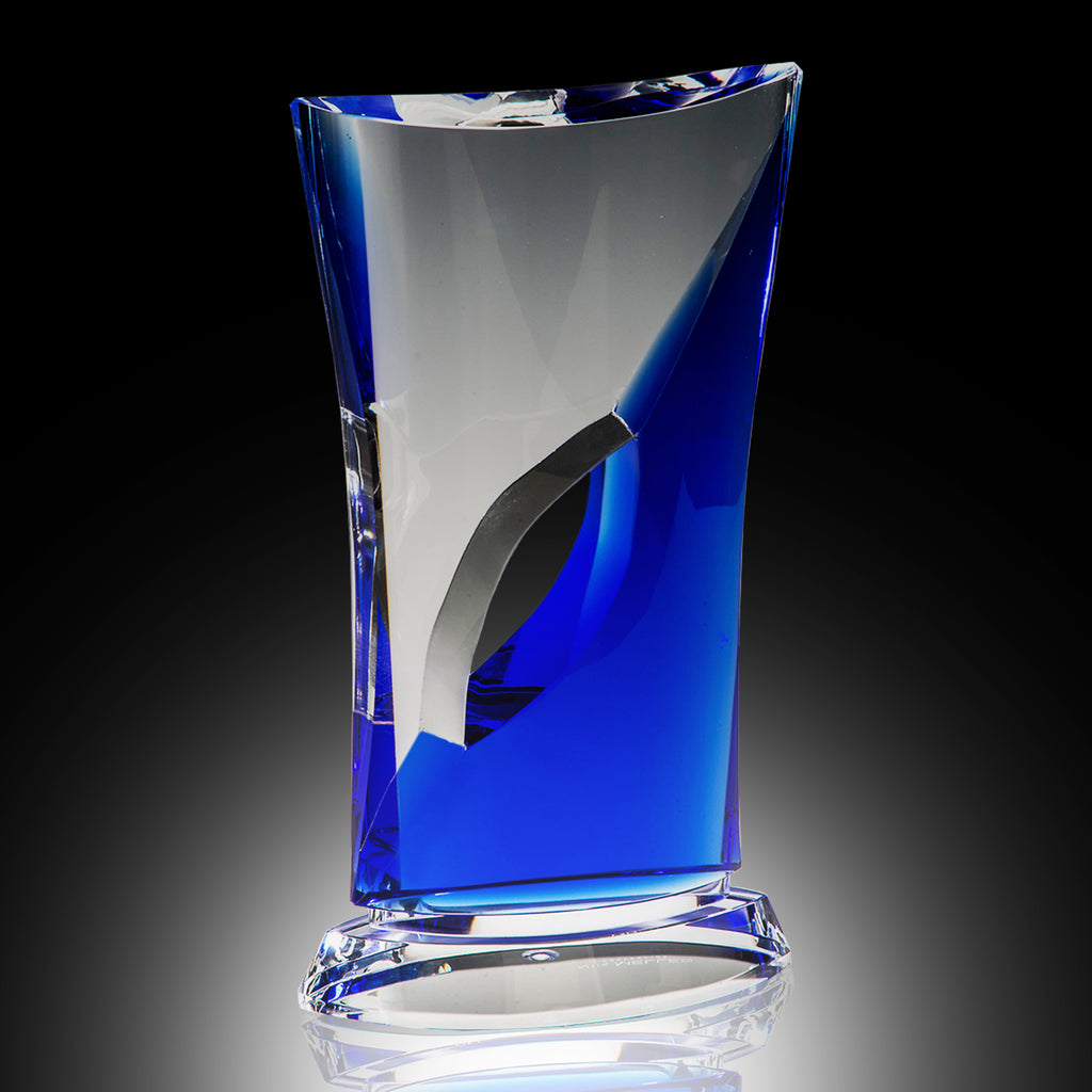 The Tempus Crystal Award is clear and blue and is made of optic crystal.  The prestigious Nik Meller Collection includes artistically inspired "works of art" designed by Nik Meller.
