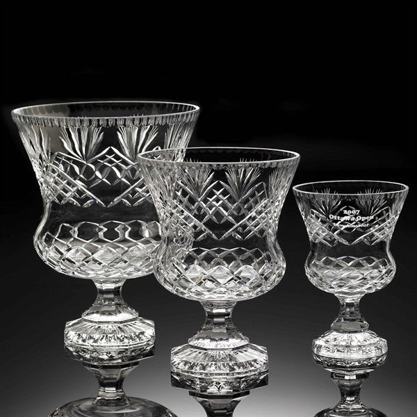 Description: Classic early Americana design defines the Colonial Crystal Trophy Cup award. With a wide rim top, delicate stem, and sturdy base, the 24% lead crystal trophy cup is a popular choice for award programs. Ideal for championship competitions or executive recognition, this award symbolizes the very hallmark of success.