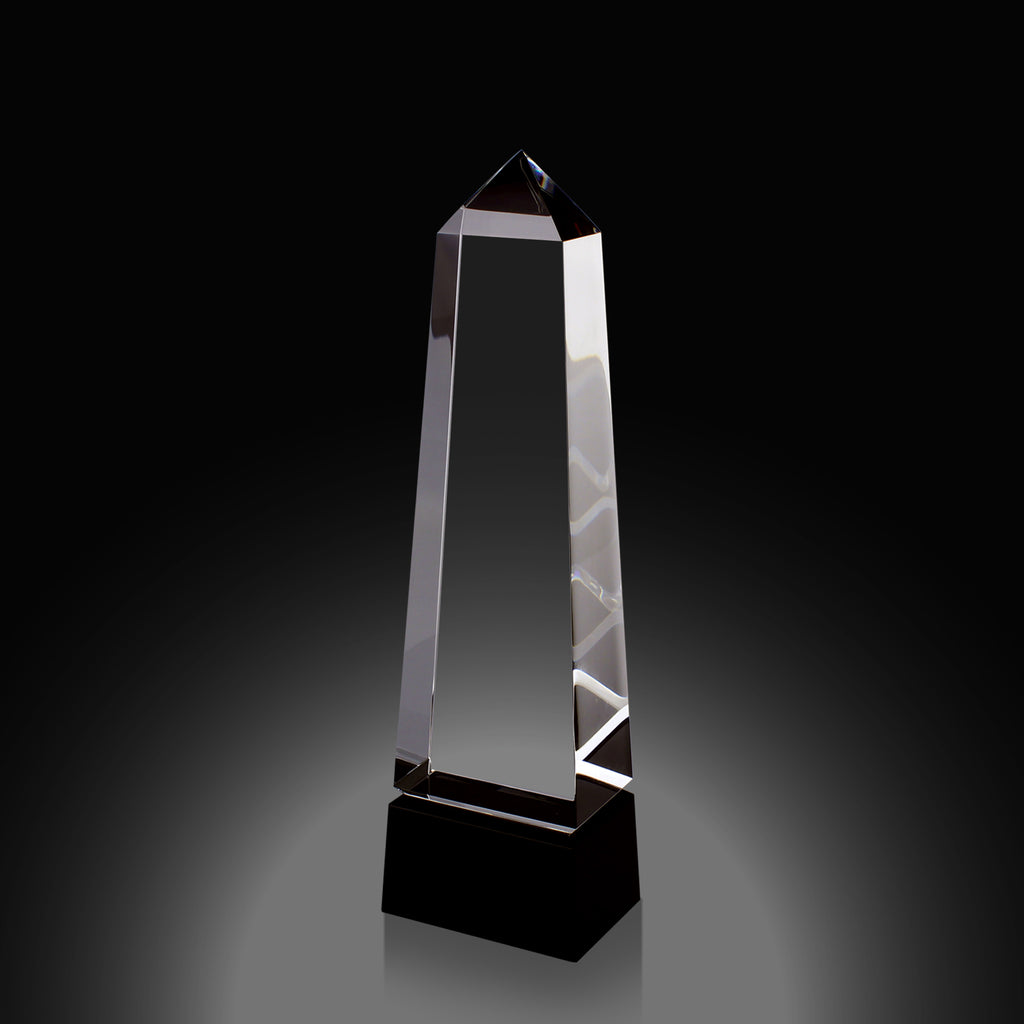 Description: This Radiant Obelisk award symbolizes reaching the milestone of one’s career! It’s clear, made of crystal, and attached to a crystal black base. You can engrave artwork and personalization. Many will love receiving this as acknowledgment for their efforts.