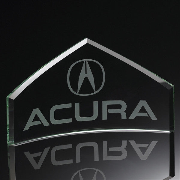 Description: An enhanced version of our Cathedral Jade Glass Award, the Cathedral Deluxe Jade Glass Award is a solid 3/8" thick with a stylish beveled edge. Emphasizing individuals and corporations that have reached the "pinnacle of success," this achievement award is a mainstay of award ceremonies. As an additional bonus, all engraving is included at no extra charge to make this an economical glass award no recognition program should be without.