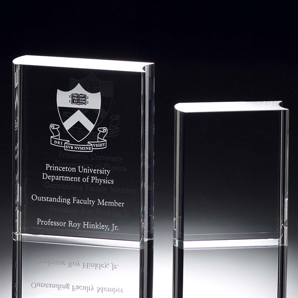 Your award recipients will love judging this book by its cover! The Solid Crystal Book Award provides an entire "book cover" surface to engrave a message of gratitude or appreciation to your favorite scholar, teacher, professor, or mentor. This crystal recognition award is a "novel" approach to honoring exceptional individuals who take learning to new heights.