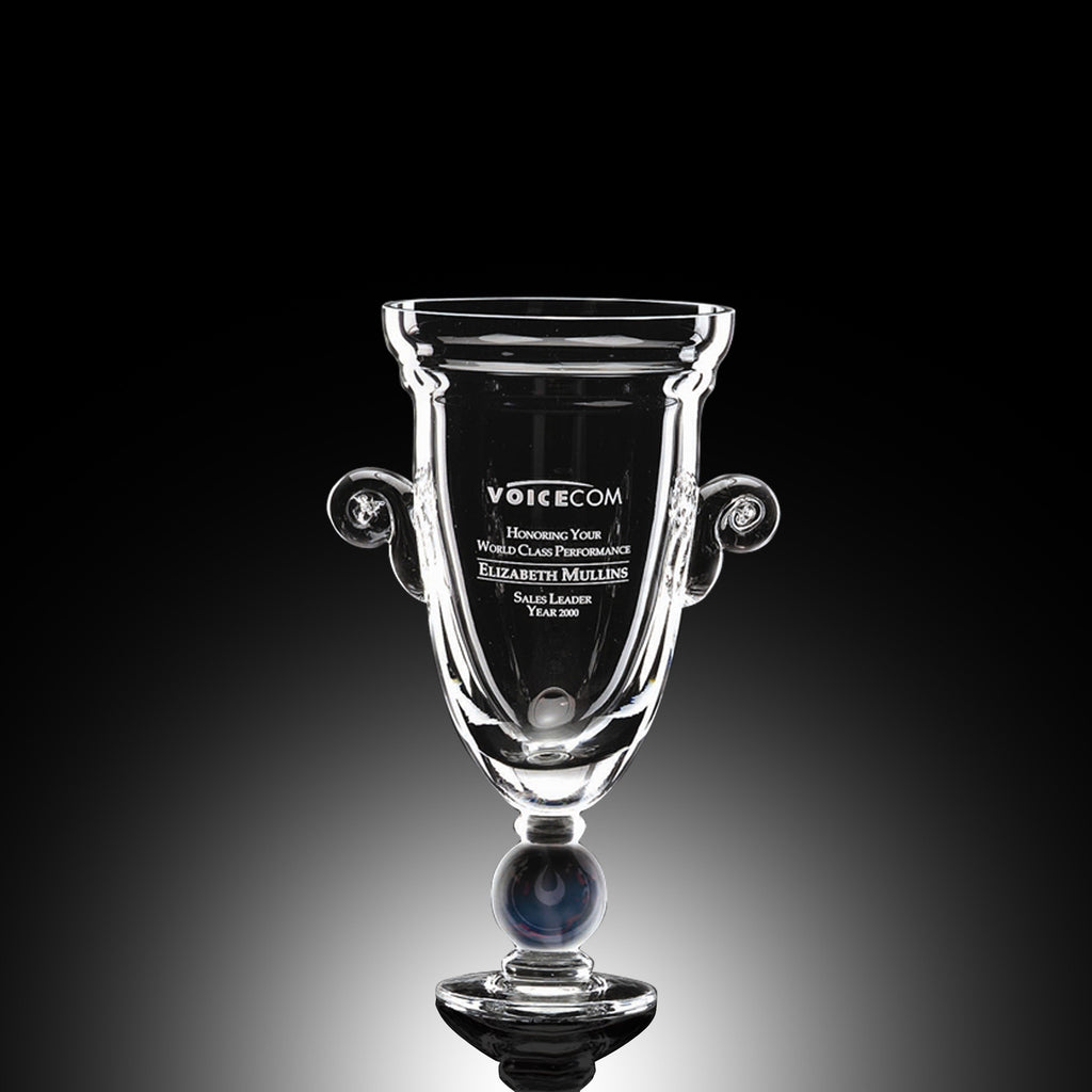 For individuals who have set the world on fire, this employee or team recognition award is the ideal selection to acknowledge unsurpassed success. The World Class Crystal Cup is crafted of hand blown crystal and includes scrolled handles and crystal sphere base. The perfect crystal trophy for employees or athletes, engrave with a logo and personalized message commending superior performance.